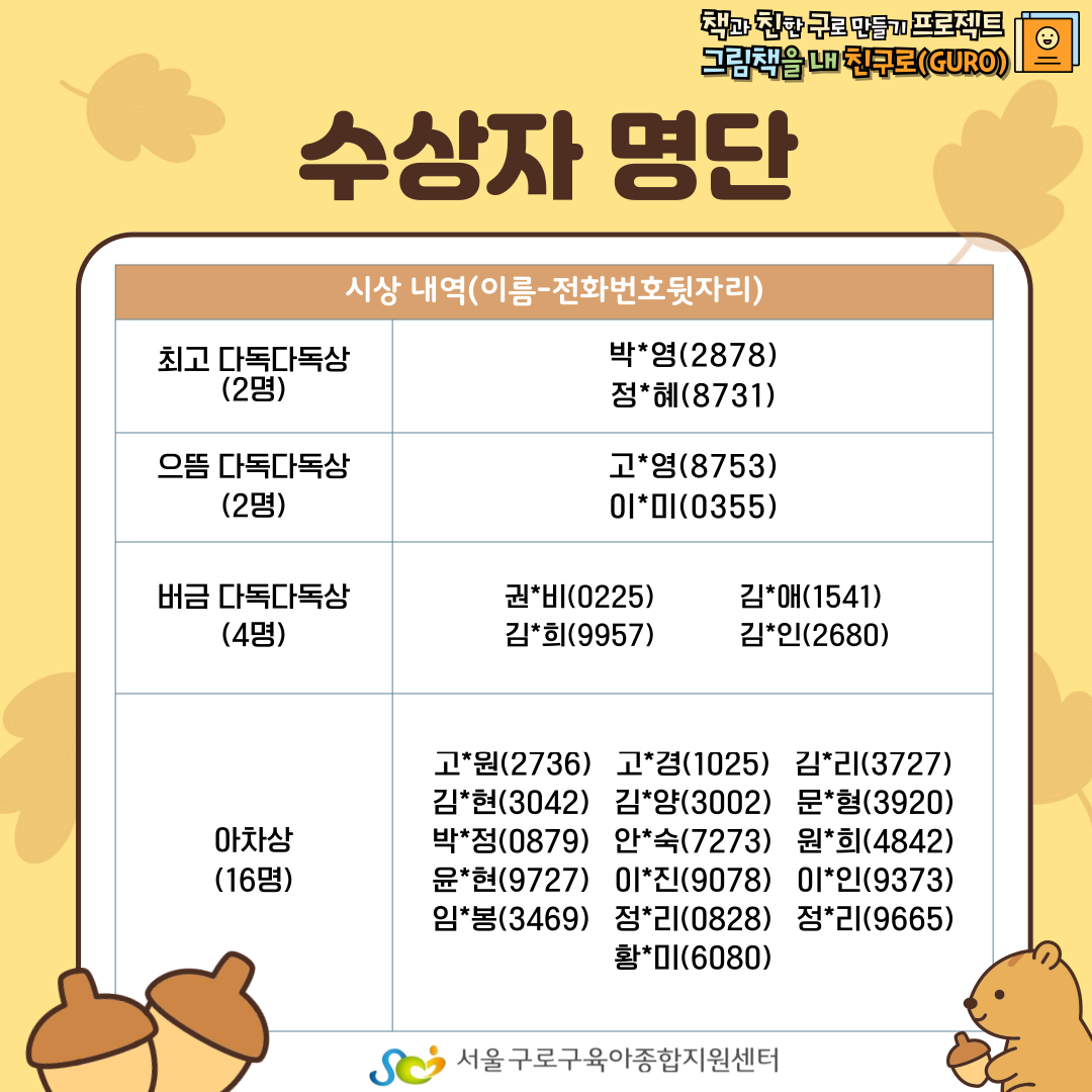 [GURO SCC-행사] '매일 하루 15분 책 읽어주기' 캠페인 수상자 발표