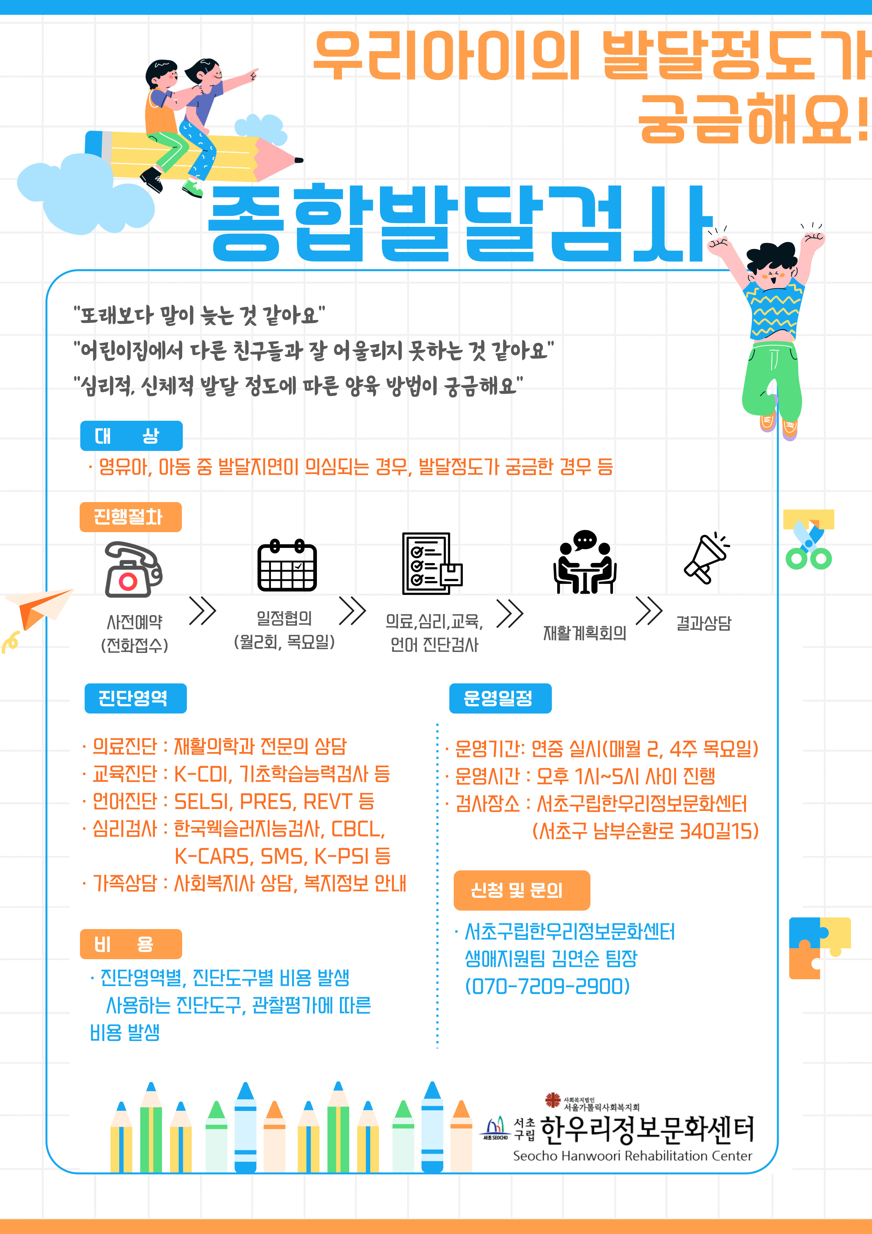 [서초구립한우리정보문화센터] 영유아, 아동 대상 종합발달검사 홍보 안내