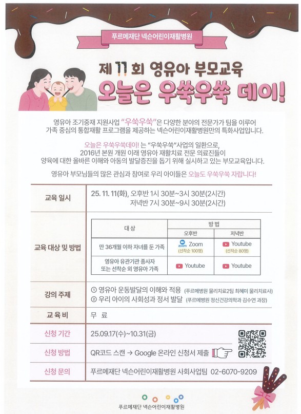 [푸르메재단 넥슨어린이재활병원] 2025년 영유아 조기중재 지원사업 "우쑥우쑥" 안내