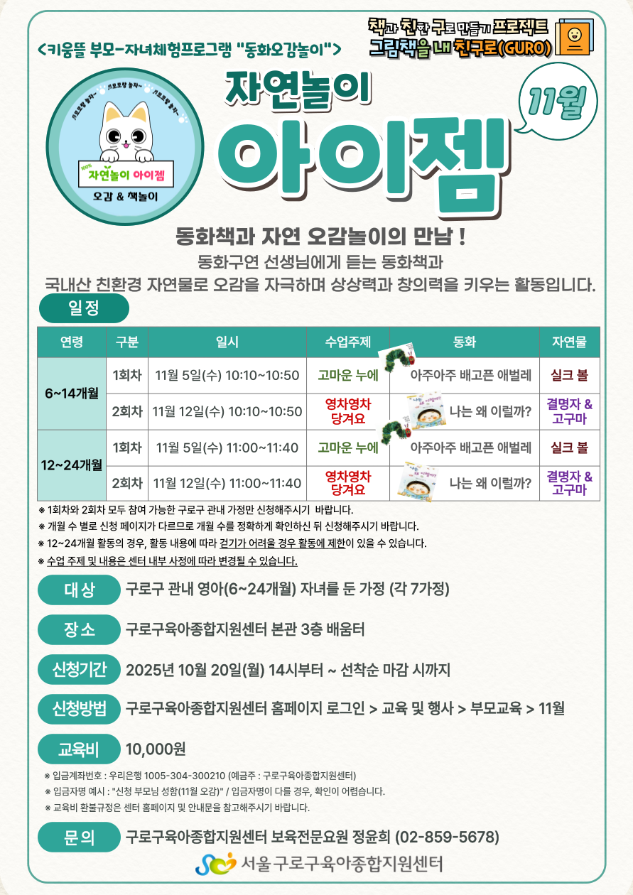 [GUROSCC-부모교육] 2025년 11월 동화오감놀이 ' 자연놀이 아이젬' 안내문