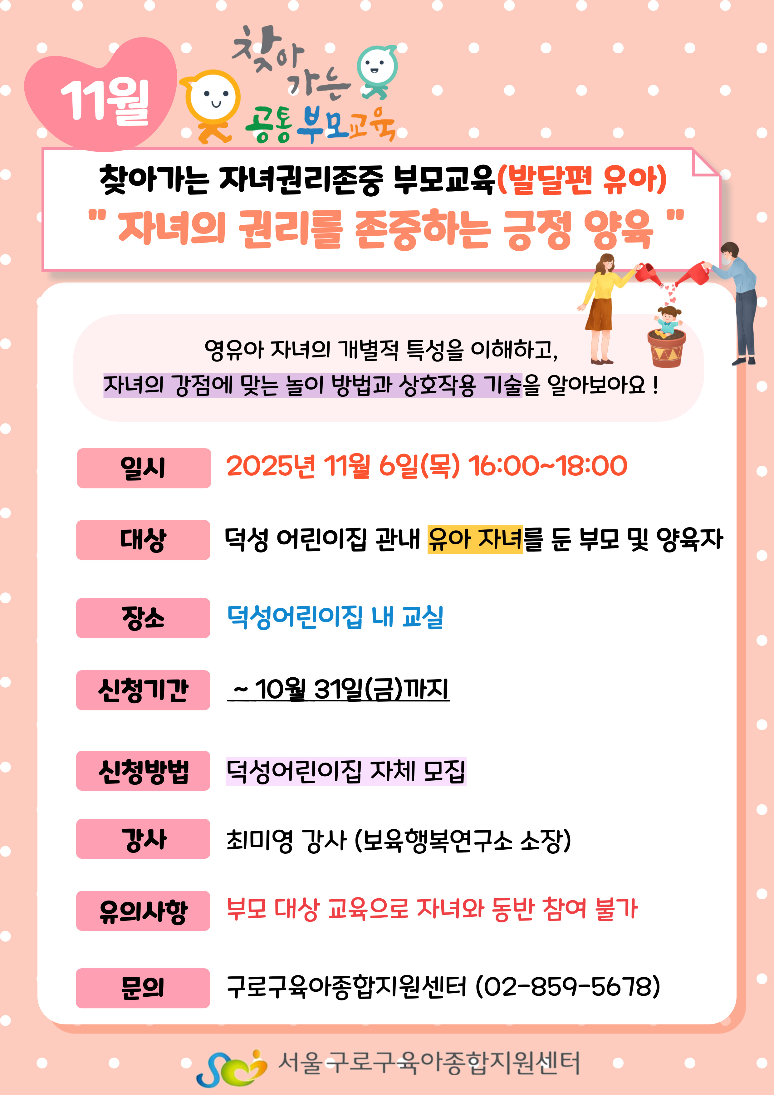 [GUROSCC-부모교육] 2025년 11월 부모교육 및 부모-자녀체험프로그램 교육 안내문