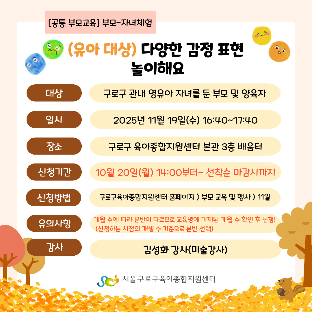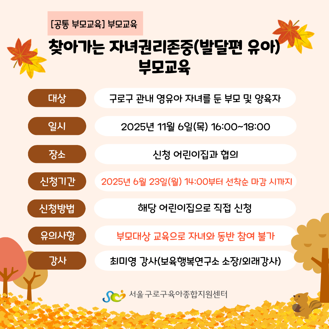 [GUROSCC-부모교육] 2025년 11월 부모교육 및 부모-자녀체험프로그램 교육 안내문