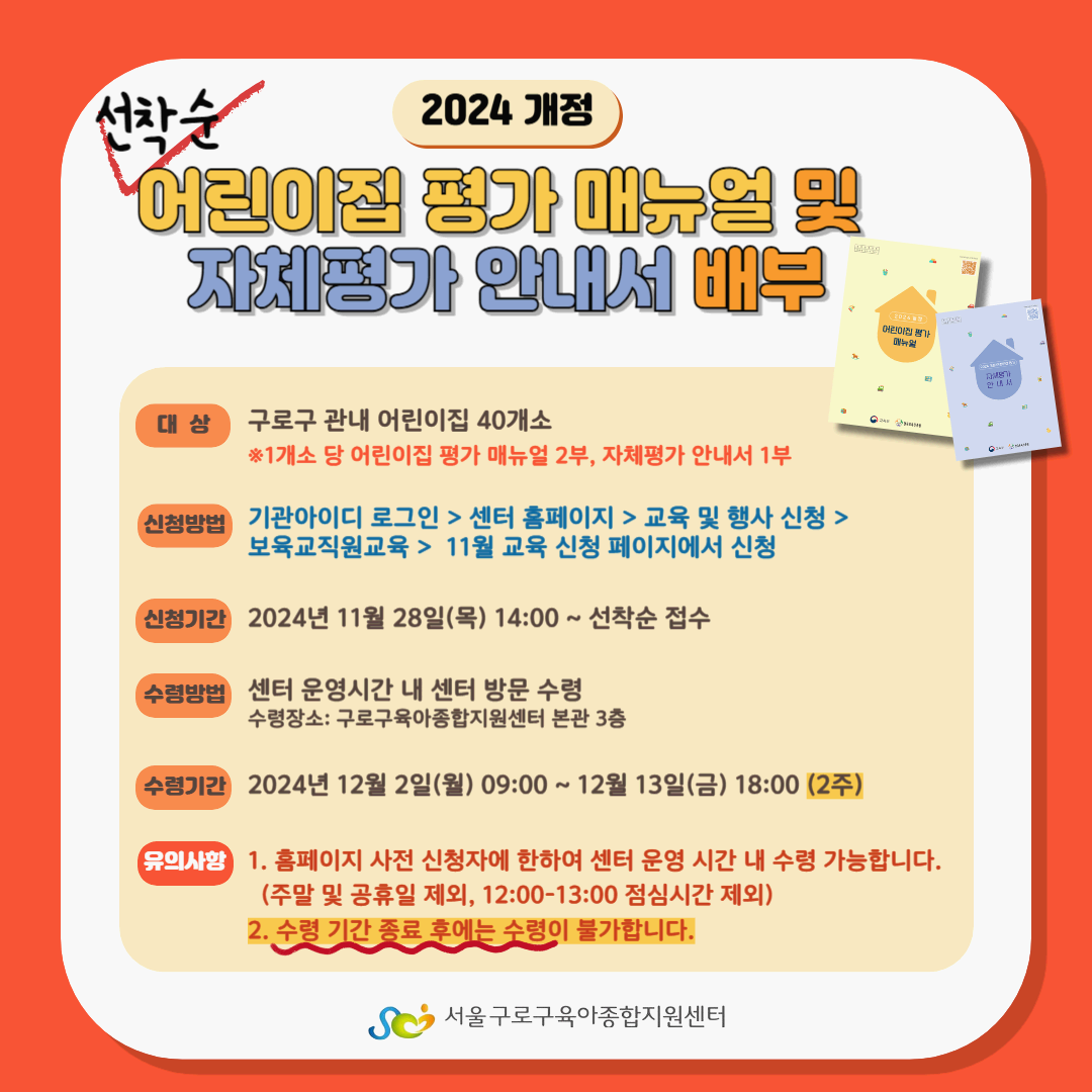 (선착순) 2024 어린이집 평가 매뉴얼 및 자체평가 안내서 배부