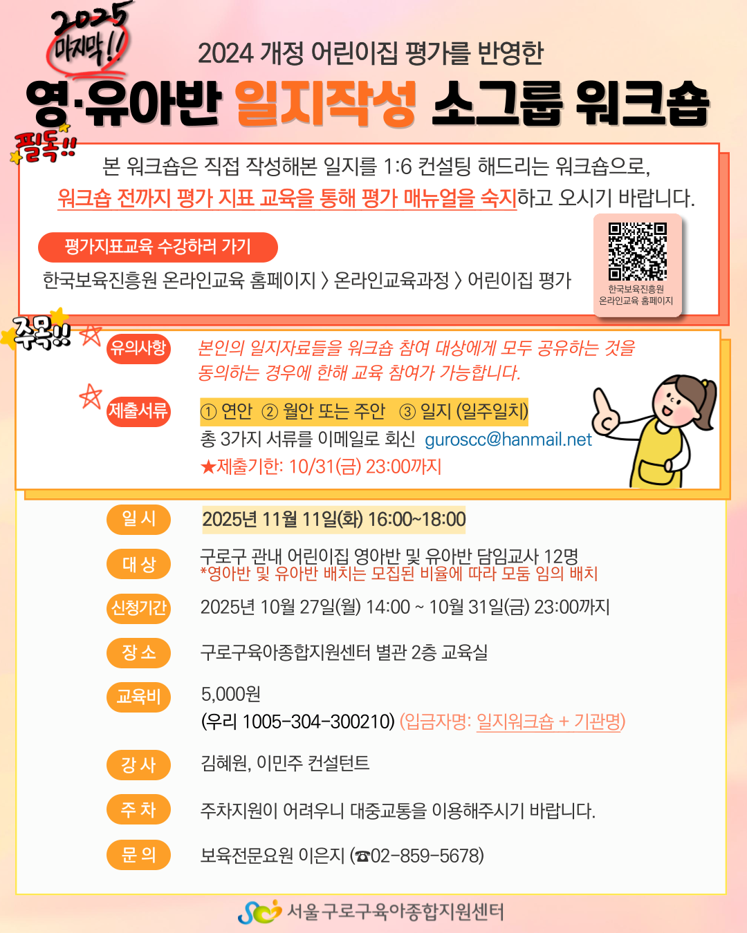 | (2025년 마지막) 11월 일지작성 소그룹 워크숍 (영아반, 유아반 모집) |